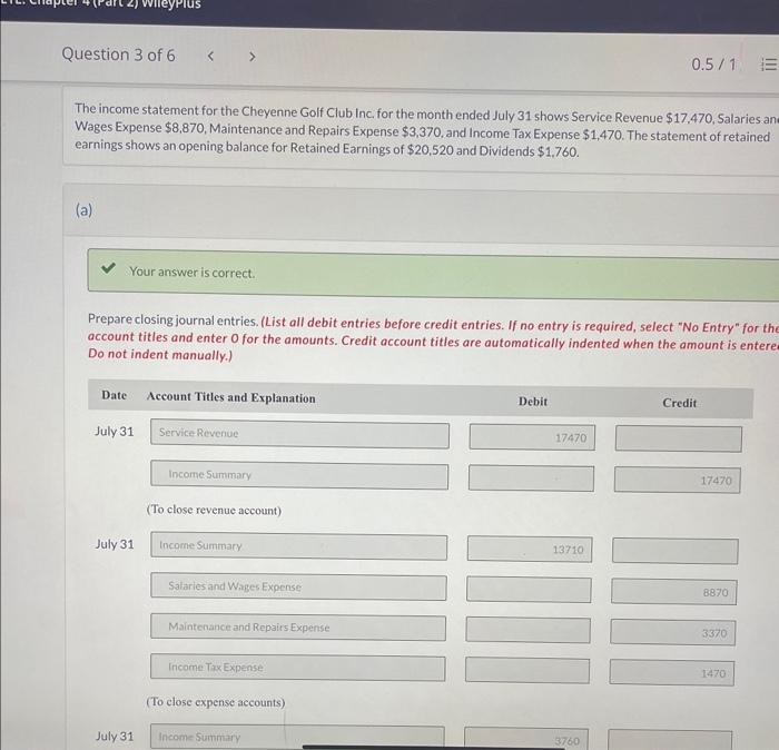Solved The statement for the Cheyenne Golf Club Inc.